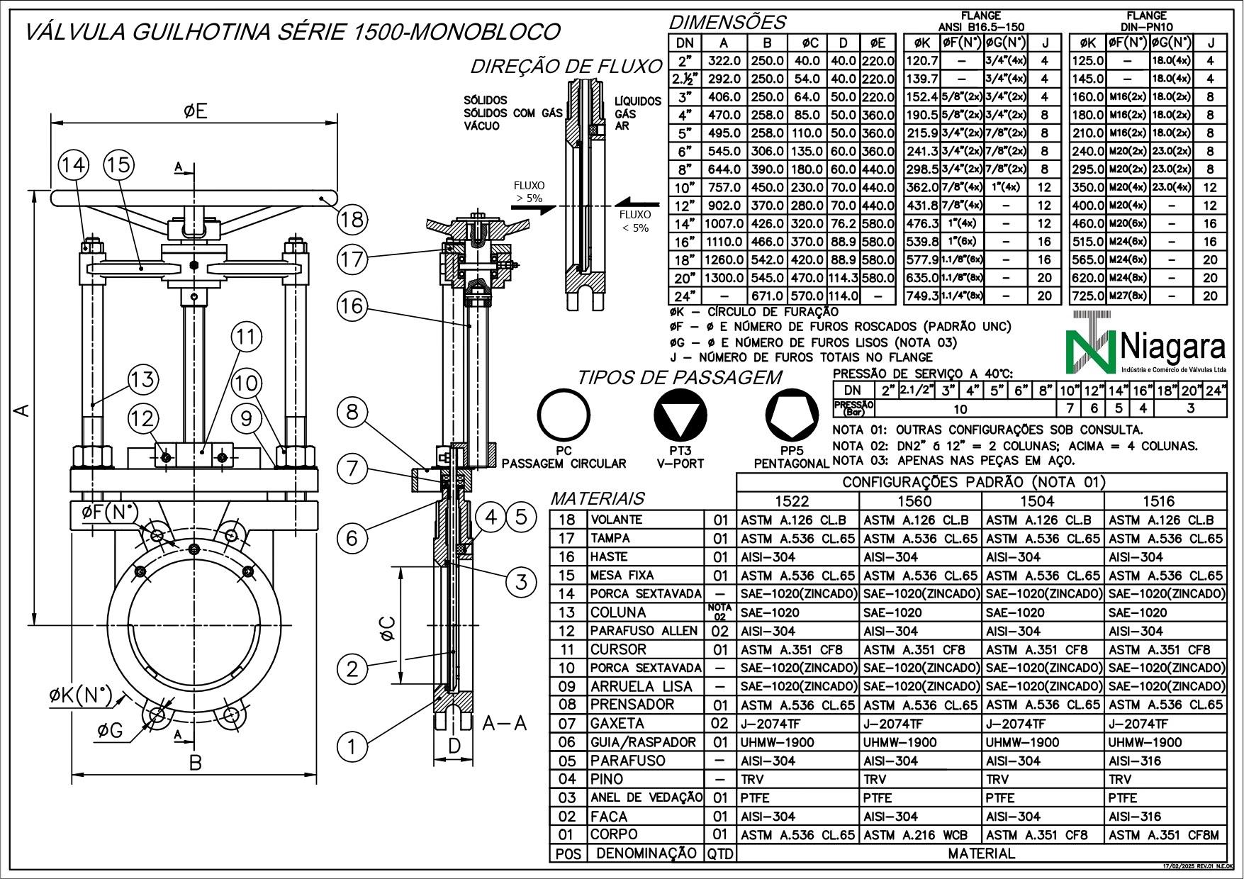 Válvula guilhotina com corpo monobloco sem parafusos e juntas